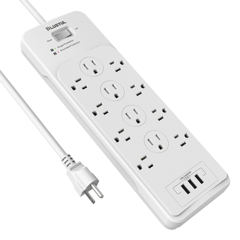 12 שקעים מגן שקעים עם טעינה USB, 3 USB-A מוט הספק סטנדרטי ארה "ב עם מחוון
