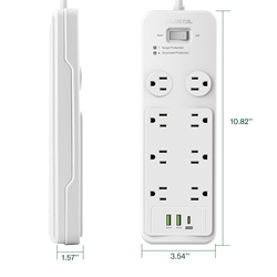 8 розеток NEMA 5-15P USB Power Strip с защитой от скачков напряжения